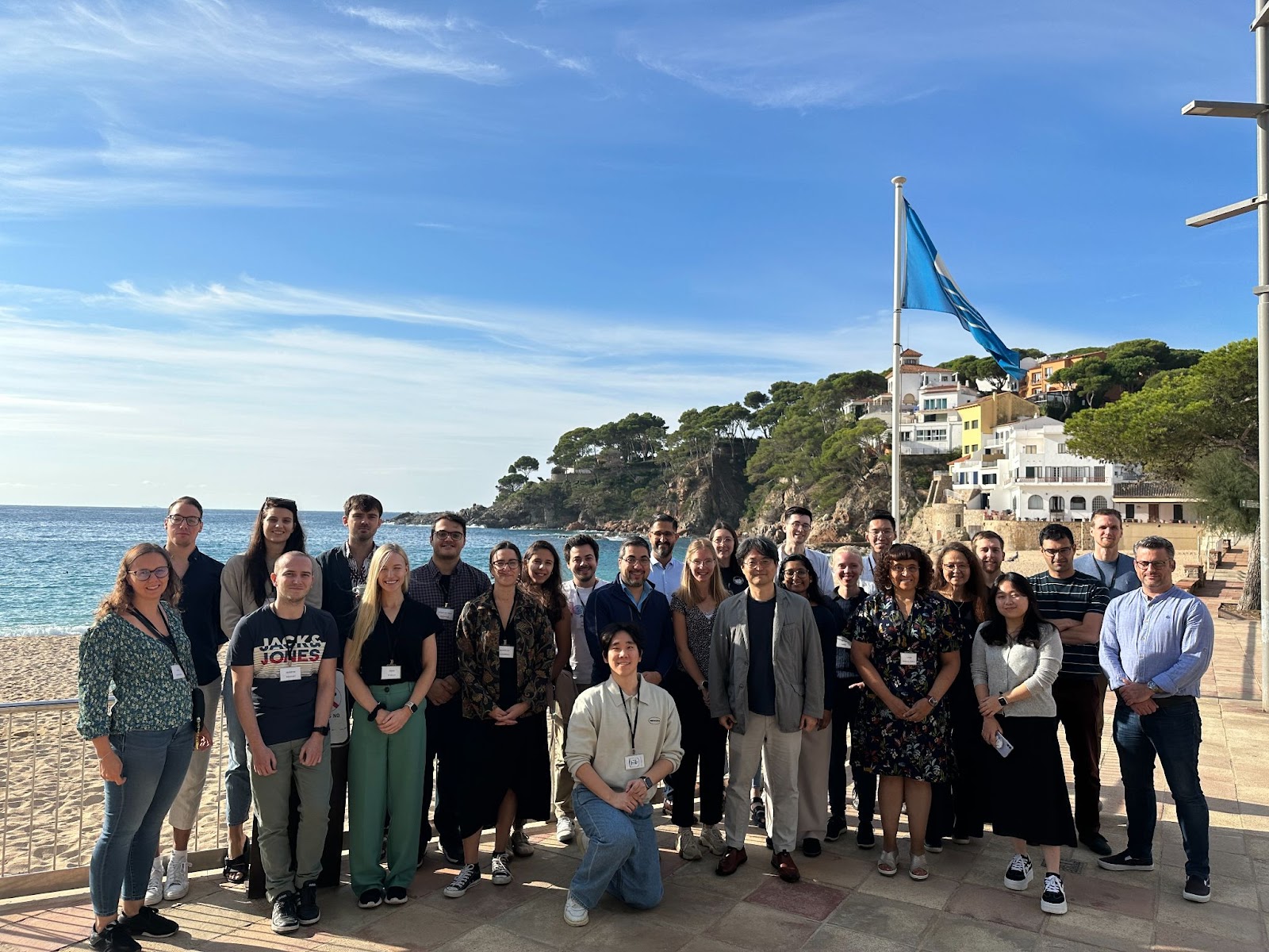 Group photo of course coordinators, lecturers, and participants, by the beach of Llafranc.