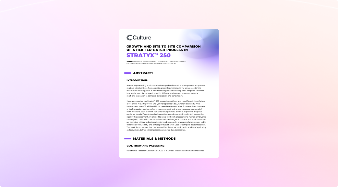 Growth and Site to Site Comparison of a HEK Fed-Batch Process in Stratyx™ 250